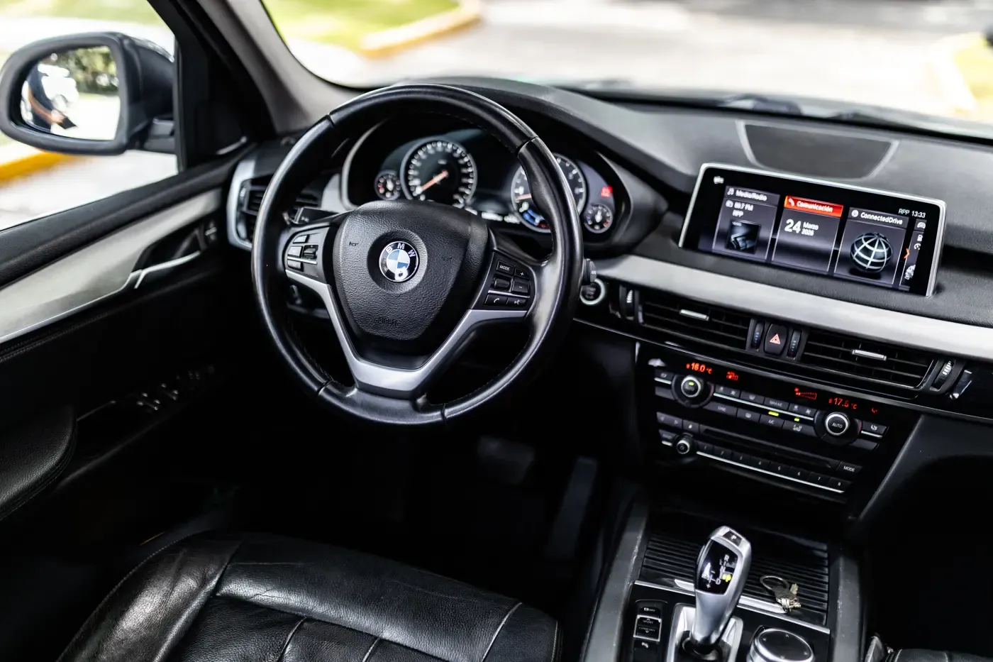 • Equipamiento: Faros xenón adaptativos con DRL LED, faros antiniebla LED, aros de 20 pulgadas, techo panorámico eléctrico, portón trasero eléctrico, espejos eléctricos abatibles y calefactables, sensores de lluvia y luces automáticas, asientos eléctricos con memoria y calefacción, tapiz SensaTec, climatizador bizona, volante multifunción de cuero, sistema iDrive con pantalla de 10.2 pulgadas, Bluetooth y USB, control por voz, control de crucero, cámara de retroceso, sensores de estacionamiento delanteros y traseros, control de estabilidad, control de descenso, airbags múltiples, acceso sin llave y botón de encendido, computadora a bordo, iluminación ambiental interior. • Extras: Parrilla de techo BMW