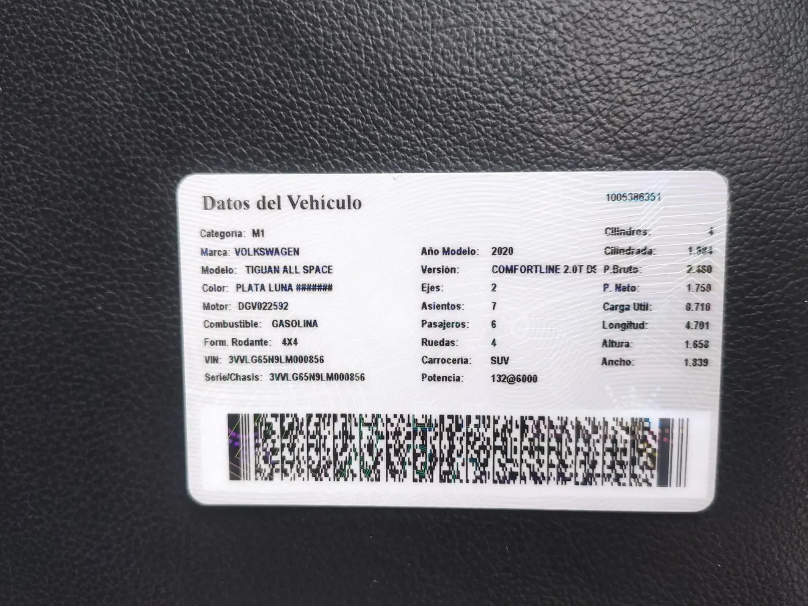 • VOLKSWAGEN TIGUAN ALLSPACE VERSIÓN COMFORTLINE 2.0T DSG • ÚNICO DUEÑO Y MANTENIMIENTO EN CASA • AÑO MODELO 2020 • VEHÍCULO SUV IMPECABLE • MOTOR A GASOLINA DE 2.0 TURBO DE 4 CILINDROS EN LÍNEA CON POTENCIA DE 180 HP Y 320 NM DE TORQUE. • TRANSMISIÓN AUTOMÁTICA DE DOBLE EMBRAGUE (DSG) DE 7 VELOCIDADES • TRACCIÓN INTEGRAL 4MOTION (4X4) • FRENOS DELANTEROS DE DISCOS VENTILADOS • FRENOS POSTERIOR DE DISCOS • FRENO DE MANO ELECTROMECÁNICO CON FUNCIÓN AUTOHOLD • SISTEMA DE FRENOS ABS + EBD • ASISTENTE HIDRÁULICO DE FRENADA DE EMERGENCIA (HBA) • SISTEMA DE CONTROL ELECTRÓNICO DE ESTABILIDAD (ESC) • DIRECCIÓN ASISTIDA ELECTROMECÁNICA • BANDEJAS MULTIUSO EN 2DA FILA (ABATIBLES). • AIRBAG (PILOTO, COPILOTO, CORTINAS, LATERALES ) • AIRE ACONDICIONADO CLIMATRONIC DE 3 ZONAS CON FILTRO ANTIALÉRGICO Y PANEL DE MANDOS EN LA PARTE POSTERIOR. • CIERRE CENTRALIZADO "KEYLESS ACCESS" CON BOTÓN PUSH PARA ARRANQUE Y APAGADO DE MOTOR • MALETERO MANUAL • 3 FILAS DE ASIENTOS DE CUERO VIENNA • ASIENTO DEL CONDUCTOR CON AJUSTE MANUAL. • REGULACIÓN MANUAL DE ALTURA DE ASIENTO DEL ACOMPAÑANTE • CÁMARA DE RETROCESO CON VISTA TRASERA MULTIÁNGULO CON SENSORES DE APROXIMACIÓN DELANTEROS Y POSTERIOR • PANTALLA TÁCTIL CON FUNCIONES: RADIO, USB, BLUETOOTH CON CABLE USB APPLE CARPLAY Y ANDROID AUTO. • LLANTAS DELANTERAS NUEVAS CAMBIADAS RECIÉN NUEVAS – LLANTAS SUMITO 235/55R18.